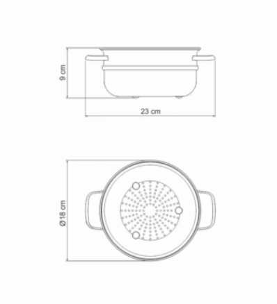 Corpo de alumínio com espessura de 1,8 mm que proporciona cozimento rápido e uniforme. Revestimento interno e externo de antiaderente